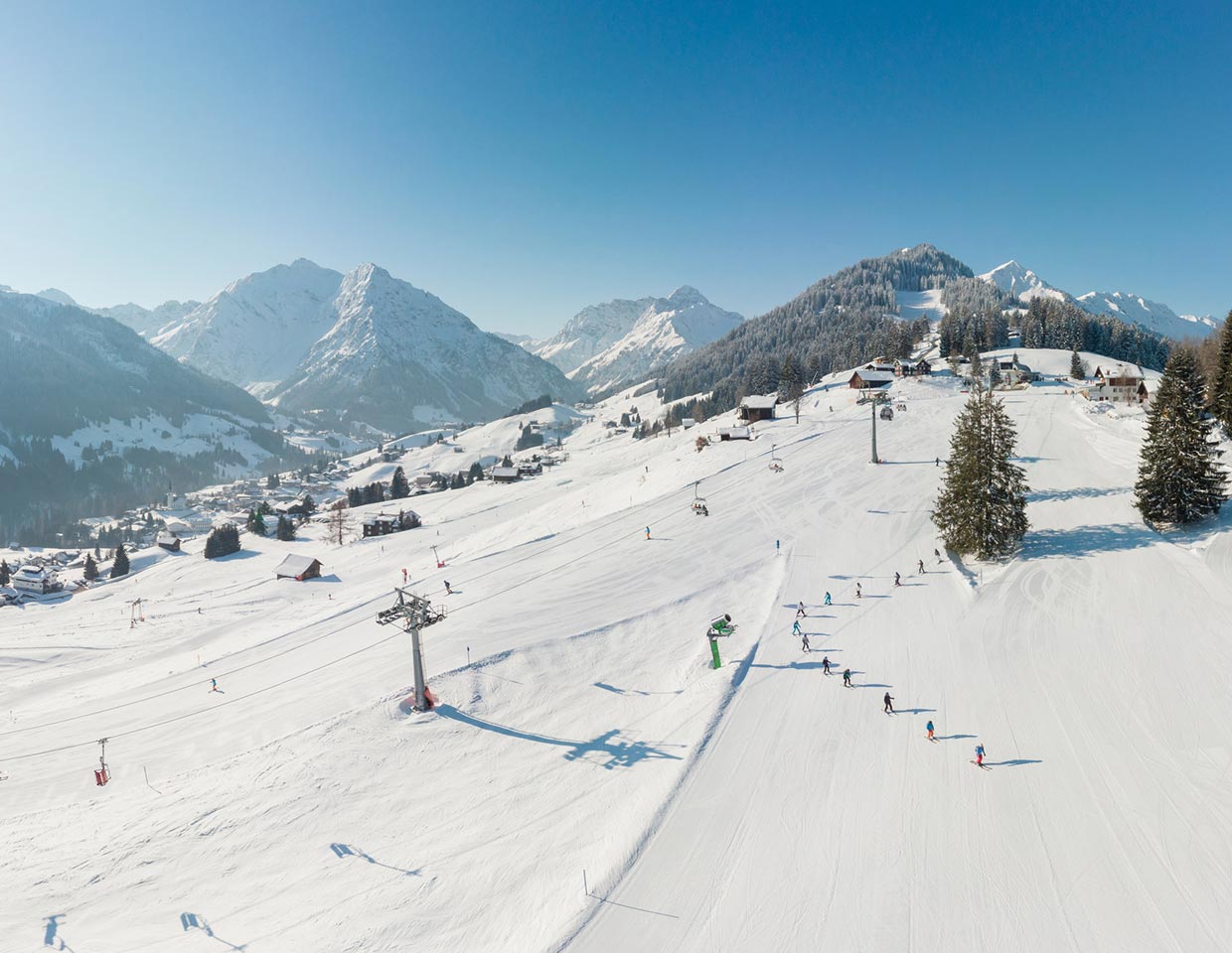 Pulverschnee, Pistenvielfalt und gemütliche Hütten – erlebe die Faszination des Winters im Kleinwalsertal. Skifahren, Langlaufen, Winterwandern oder einfach den Blick auf verschneite Gipfel genießen: Am Lichterberg bist Du mitten im Geschehen.